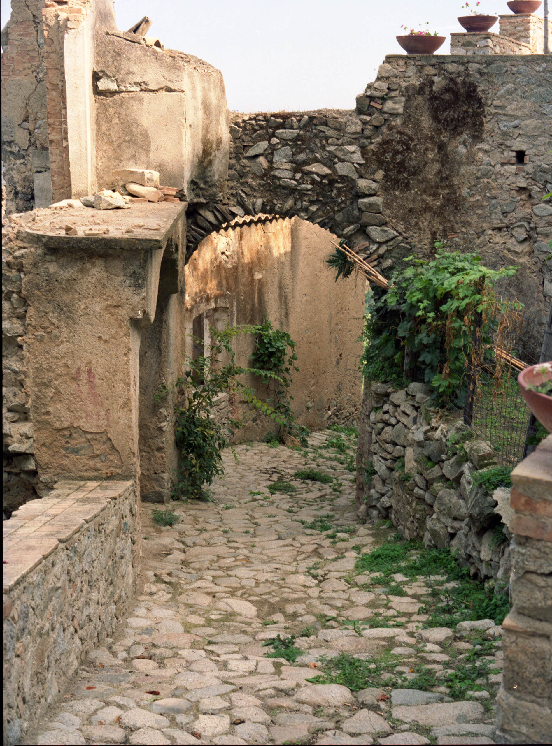 Badolato,   insomma,   non   vuole   morire. È un luogo perso che si è ritrovato. Passeggiare per i suoi vicoli che convergono a spirale verso la parte alta, dove stupendo è l’affaccio sul mare, è meraviglia e silenzio. Lo spazio vuoto di persone non è raggelante; piuttosto, stimola la ricerca degli affetti e delle cose e del passato. Innanzitutto le chiese, che sono quattordici. Andiamo a vedere, nel centro del paese, quelle dell’Immacolata (1686), con il bel portale in granito, di San Domenico, ricostruita due volte nel Settecento utilizzando granito locale, e di Santa Caterina d’Alessandria, iniziata nel 1198, dov’è custodita la tavola della Madonna col Bambino del XV secolo. Le mura del XIII secolo e il castello sono ruderi. Ma restano in piedi, fin che possono, le case costruite con le pietre di fiumara portate sul capo dalle donne, e anche quelle con i tetti sfondati, e le case bucate di Vico Siena e di via Piliero, i portali di Corso Umberto e quelli di Vico Fiorentino tutto in salita, le case slabbrate – questa precarietà colta dal grande attore napoletano Antonio Neiwiller, che ha frequentato Badolato: