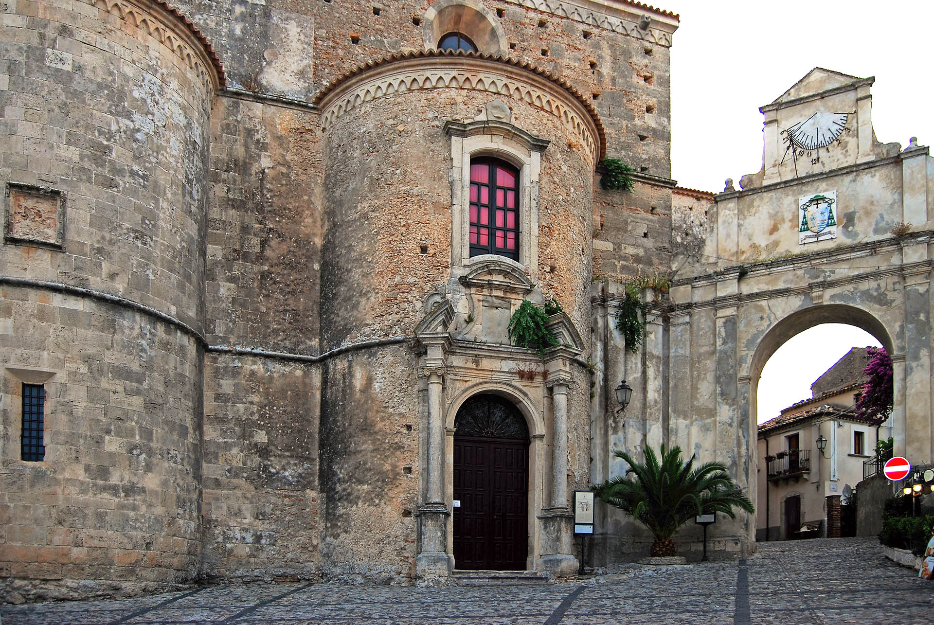 L’incredibile concentrato artistico di chiese e palazzi (tradizione vuole che le chiese fossero un centinaio) si prolunga nelle stradine, nelle piazzette, negli archi, nei sottopassi, nei ricchi portali, riservando splendidi scorci e sorprese qui e là, come le bifore moresche della Casa Catalana o, nel quartiere Borgo, le botteghe dei vasai scavate nella roccia. Peccato che tanta bellezza sia disturbata dal viavai delle automobili nel centro storico. Si può andare in ordine sparso incontro ai monumenti più significativi, seguendo solo le suggestioni che nascono dal puro sguardo. Subito l’occhio si posa sul superbo impianto absidale della cattedrale, consacrata nel 1045 e riconsacrata nel 1222 alla presenza dell’imperatore Federico II. Il primitivo stile romanico-normanno ha subito rimaneggiamenti e rifacimenti, ma resta intatto il fascino delle origini nell’impianto basilicale, con una parte costruita sulla nuda roccia e una parte su una cripta a croce greca forse dell’VIII secolo. All’interno le colonne di marmo in doppia fila che dividono le navate si dice provengano dai templi della Magna Grecia. I bagliori barocchi della Gerace secentesca che nella cattedrale fanno capolino negli altari, esplodono nel fastoso altare maggiore della chiesa di San Francesco, edificio gotico del 1252 con splendido portale ogivale in stile arabo-normanno di epoca sveva. La luce orientale di Bisanzio emana dalla chiesetta di San Giovannello (XI secolo) sommessa e austera. Su piazza delle Tre Chiese affaccia anche l’ottocentesco edificio del Sacro Cuore. Parla di una grecità ancora viva la chiesa di Santa Maria del Mastro, di impianto bizantino (un’iscrizione greca la data al 1084) sebbene sorta dopo il consolidamento del potere normanno.